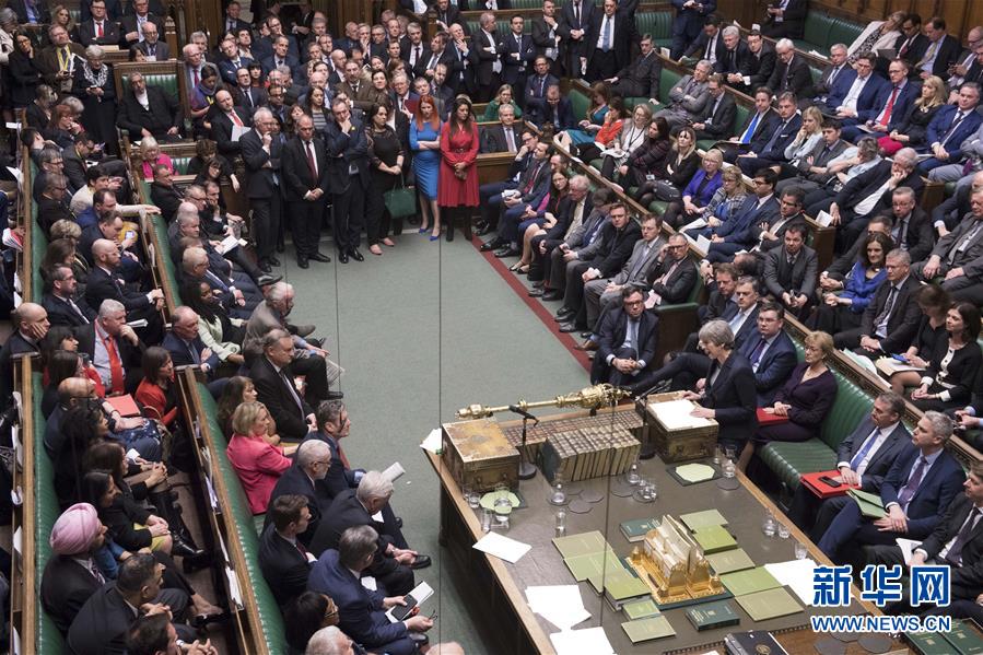 3月13日,在英国伦敦,英国首相特雷莎·梅在议会下院发表讲话。英国议会下院13日投票决定,反对英国在任何情况下“无协议脱欧”。 新华社发(英国议会摄影师杰西卡·泰勒)