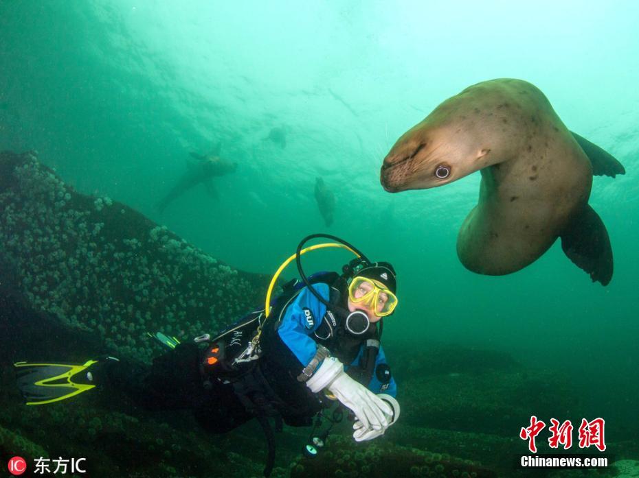 摄影师潜水邂逅顽皮海狮 为抢镜差点遭“吞食”