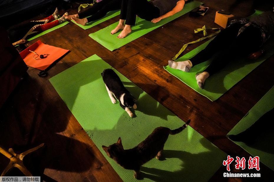 纽约一家咖啡馆开瑜伽课 猫咪成学员特殊“陪练”