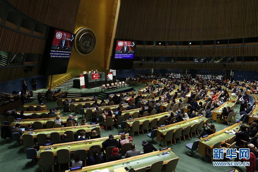3月12日,联合国大会厅,来自全球的有影响力的女性齐声表示:为实现性别平等,“冲破制约”。图为“掌权女性”高级别活动在位于纽约的联合国总部举行。新华社记者 李木子 摄 图片来源:新华网