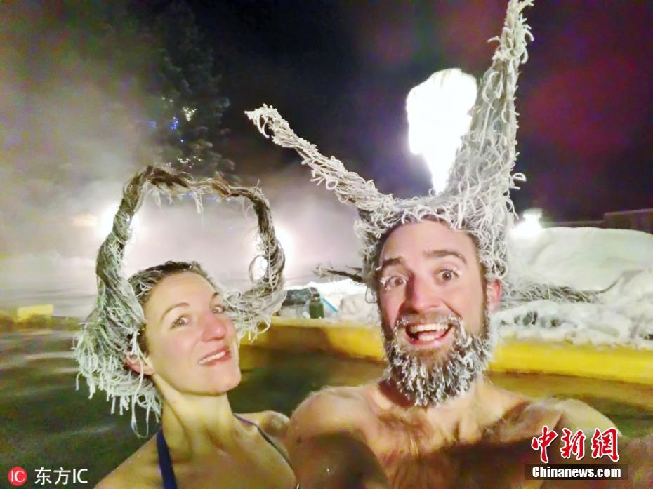 2019年3月14日报道(具体拍摄时间不详),日前,加拿大育空地区塔希尼温泉度假胜地再次举行“冻发大赛”,几名勇敢的参赛选手以搞笑的发型脱颖而出。来自世界各地的参赛者在零下十几度的寒冬中跳进温度在36-42摄氏度之间的温泉中,然后利用温泉与空气之间的温差将头发冰冻成各种奇形怪状的造型。 活动经理Andrew Umbrich解释说:“比赛的目的是鼓励人们尽可能创造出最有创意的冷冻发型。你泡在温泉里,让蒸汽积聚在你的头上,而冷空气会使你的头发结冰。头发冷冻成型后,你就可以拍照了。我们在比赛中收集了人们拍摄的所有照片,并在三月份决出前三名。由于我们无法控制天气,也很难预测寒潮何时到来,所以通常当天气足够冷时,我们就开始接受人们拍摄的照片。” 图片来源:东方IC 版权作品 版权作品