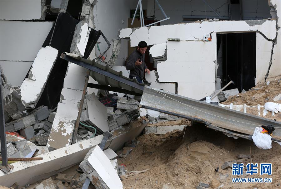 3月15日,在加沙城,一名男子查看空袭过后的废墟。 新华社发(亚西尔摄)