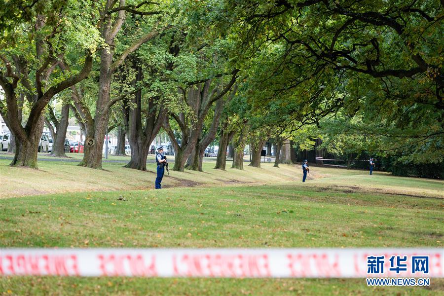 3月16日,在新西兰克赖斯特彻奇,警察在事发清真寺附近警戒。 新西兰南岛克赖斯特彻奇市15日发生枪击案,目前已造成至少49人死亡,48人受伤。 新华社发(朱其平摄)