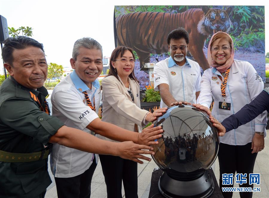 3月17日,在马来西亚吉隆坡,马来西亚自然资源部部长萨维尔(右二)参加宣传野生动物保护的活动。 新华社发(张纹综摄)