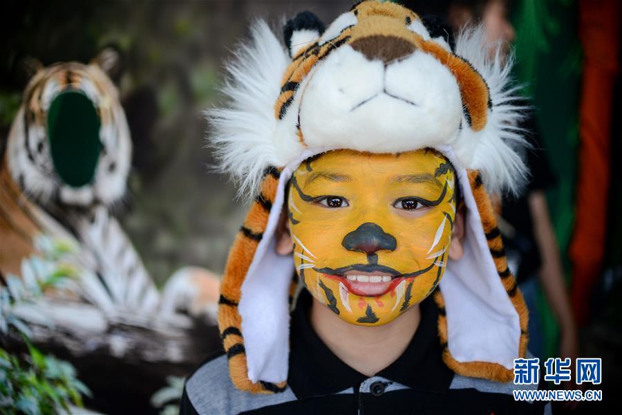 3月17日,在马来西亚吉隆坡,一名儿童化上“老虎妆”。 新华社发(张纹综摄)