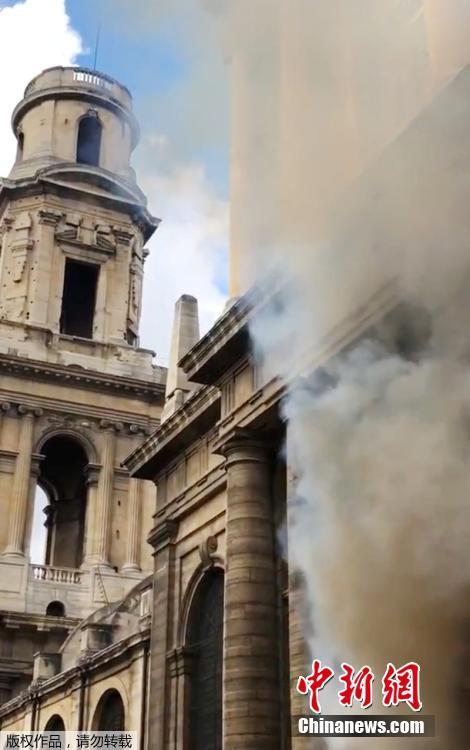 法国圣叙尔比斯教堂着火 消防员紧急扑救