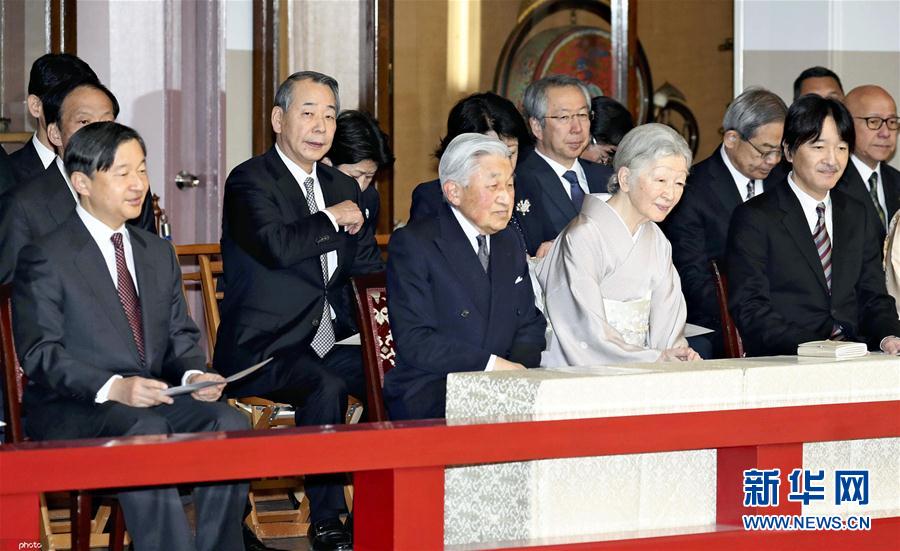 日本明仁天皇观看纪念其登基30周年宫廷音乐表演