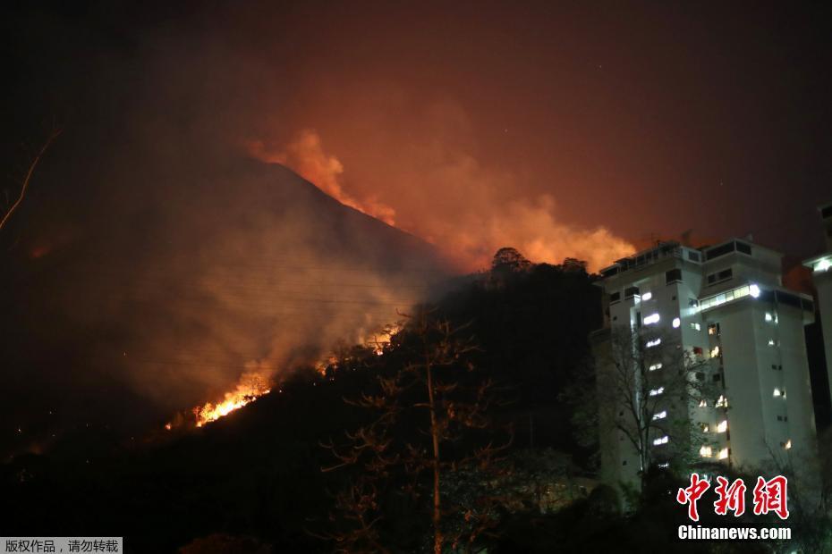 当地时间2019年3月18日,委内瑞拉加拉加斯,当地阿维拉山发生大火。