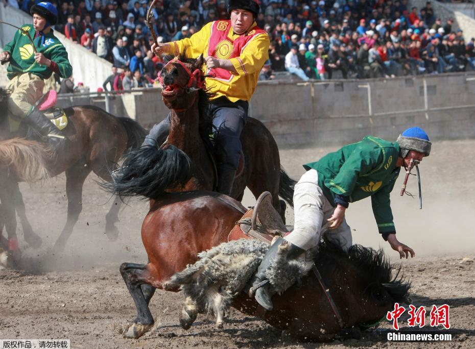 马背叼羊是在中亚地区流行的一种骑在马背上的团队运动,在比赛的前一天,组织者会杀死一头山羊,并割下它的脑袋、内脏和后背的皮肤,将其身体在盐水中浸泡一整夜,使畜体比正常情况下沉重许多,通常要达到75磅左右。这样它才能经受住激烈的争抢而不至于被轻易扯碎。