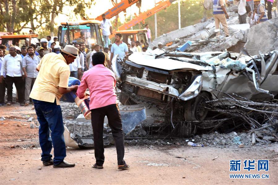 3月19日,在印度卡纳塔克邦达尔瓦德市,救援人员在楼房倒塌现场救援。 据印度媒体报道,印度南部卡纳塔克邦一在建楼房19日倒塌,目前已造成至少2人死亡、多人受伤,仍有约40人被埋。 新华社发