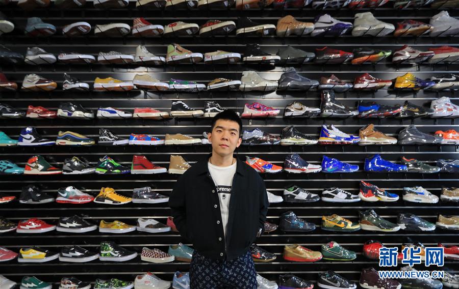 3月18日,在美国洛杉矶,潮牌店店主夏嘉欢站在店内的“鞋墙”前。 在美国洛杉矶,从涂鸦到说唱,从潮鞋到街舞,四处可见街头文化的影子。在街头文化浓郁的费尔法克斯大街,25岁的中国小伙夏嘉欢创立了自己的潮牌店,售卖球鞋、球衣等流行服饰,吸引了众多当地热爱街头文化的年轻人光顾。 新华社记者 李颖 摄