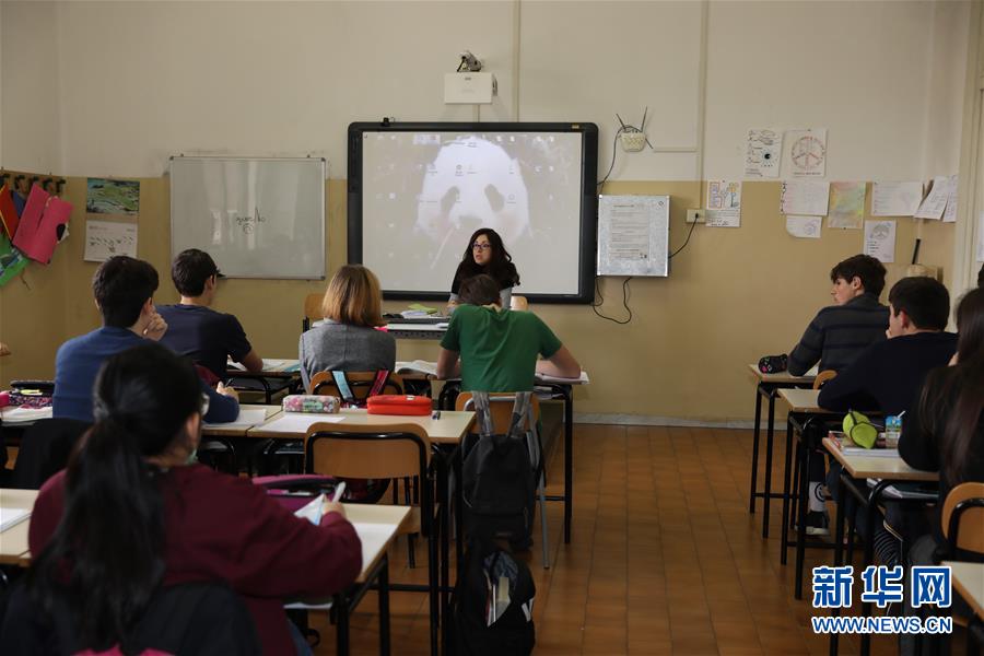 3月18日,在意大利罗马国立住读学校内,学生们在上中文地理课。 新华社记者 程婷婷 摄