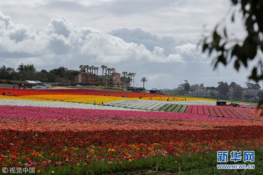 当地时间2019年3月21日,美国加利福尼亚州卡尔斯巴德市,当地农场里金盏花盛开。 (图片来源:视觉中国)