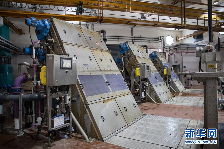 这是位于以色列特拉维夫南部的夏夫丹污水处理厂的预处理车间(3月18日摄)。 以色列地处中东,国土面积超过六成被沙漠占据,水资源十分匮乏。几十年来,通过科技创新,以色列大力发展海水淡化、污水处理、节水农业等技术。截至目前,以色列年产淡水总量约占全国可饮用水供应量的70%,全国85%的污水得到处理。 新华社记者 郭昱 摄