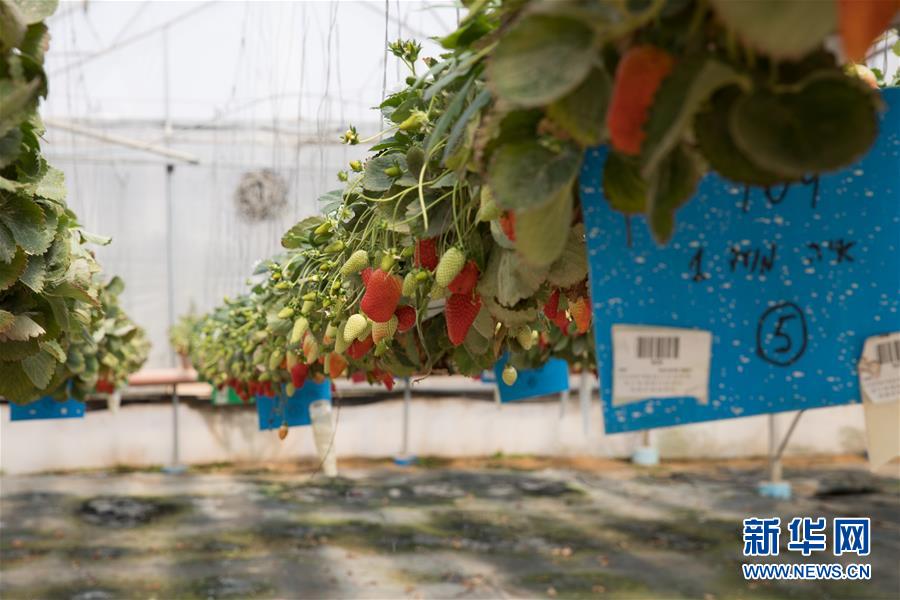 这是位于以色列内盖夫沙漠的拉马特内盖夫沙漠农业研究中心种植的草莓(3月17日摄)。 以色列地处中东,国土面积超过六成被沙漠占据,水资源十分匮乏。几十年来,通过科技创新,以色列大力发展海水淡化、污水处理、节水农业等技术。截至目前,以色列年产淡水总量约占全国可饮用水供应量的70%,全国85%的污水得到处理。 新华社记者 郭昱 摄