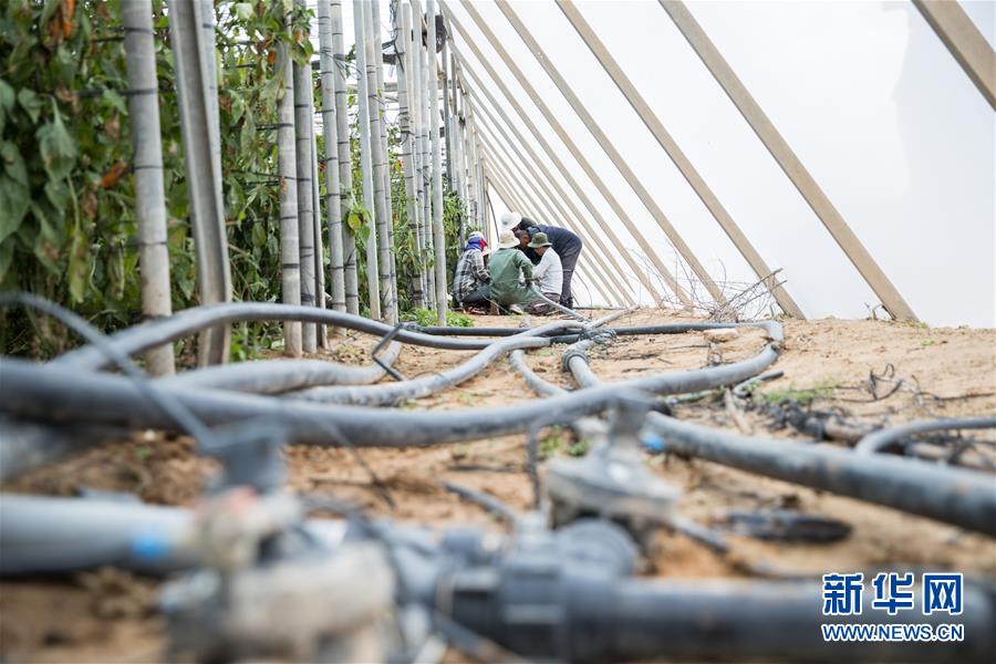 3月17日,在位于以色列内盖夫沙漠的拉马特内盖夫沙漠农业研究中心,工人安装滴灌设备。 以色列地处中东,国土面积超过六成被沙漠占据,水资源十分匮乏。几十年来,通过科技创新,以色列大力发展海水淡化、污水处理、节水农业等技术。截至目前,以色列年产淡水总量约占全国可饮用水供应量的70%,全国85%的污水得到处理。 新华社记者 郭昱 摄