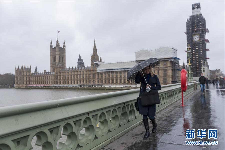 安永会计师事务所日前发布的一份报告显示,自2016年英国进行“脱欧”公投以来,金融服务业约有1万亿英镑(1英镑约合1.3美元)资产和7000个工作岗位正从英国转移到其他欧盟国家。 这是3月6日,在英国伦敦,一名女士打伞从威斯敏斯特桥经过。 新华社发(史蒂芬·程摄)