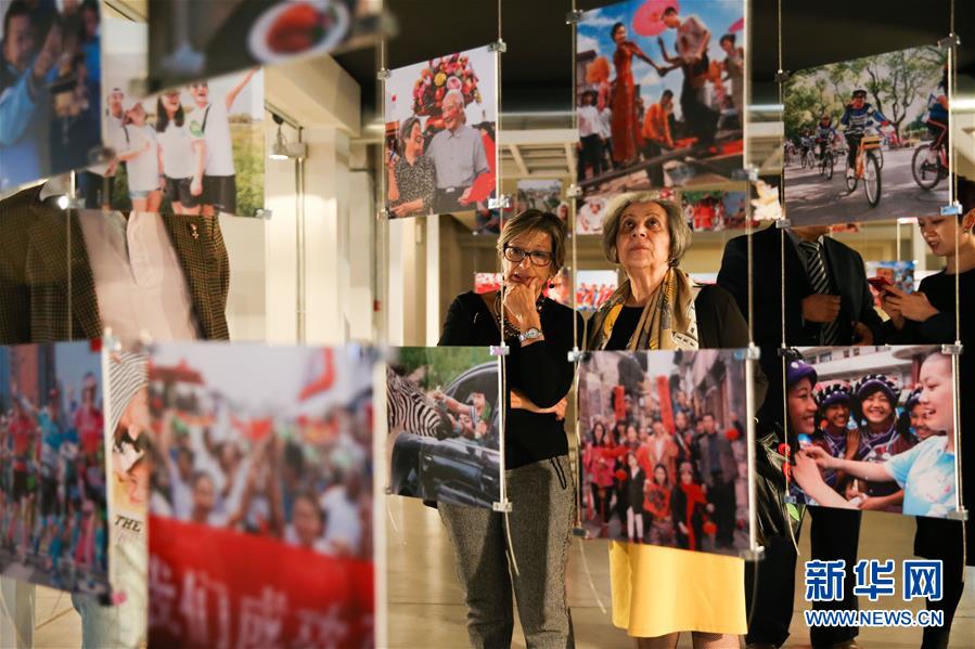 3月22日,参观者在意大利罗马举行的“千亿像素看中国——城市与人”互动主题展上观看中国人生活面貌的照片。
