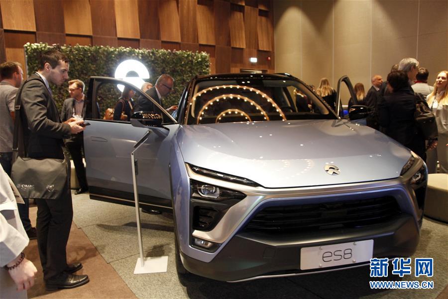 3月22日,在挪威首都奥斯陆,中国智能电动汽车制造商蔚来汽车的高性能智能电动旗舰车型ES8在会场展出。 新华社记者梁有昶摄