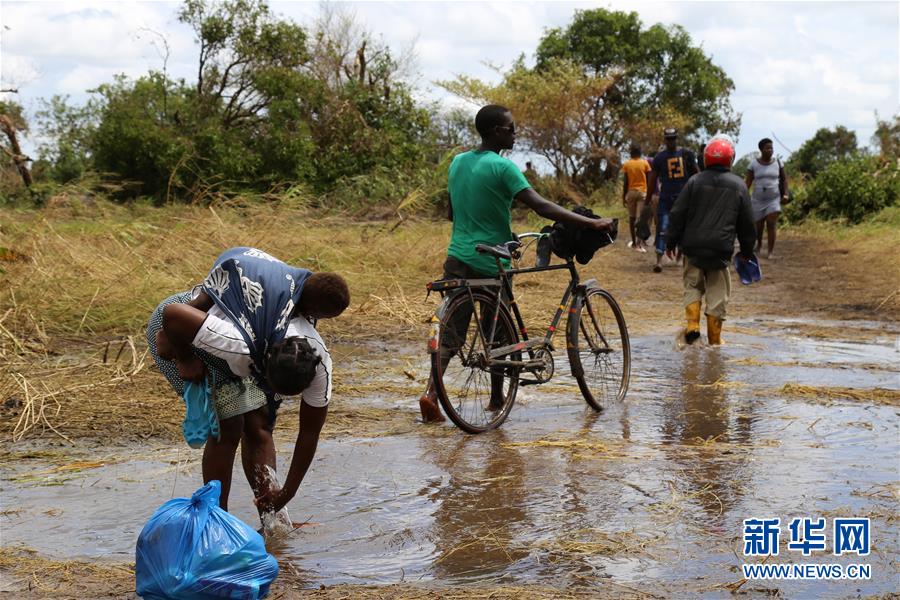 3月23日,在莫桑比克索法拉的蓬圭河流域国道6号线边上一个村落,人们走在漫水小径上。 强热带气旋“伊代”于3月14日晚间袭击莫桑比克中北部地区,连日的强降雨天气导致莫境内的蓬圭河水量猛涨,引发大规模洪涝灾害,造成巨大人员伤亡。“伊代”过境后,在位于蓬圭河流域国道6号线沿线的村落和集镇,人们艰难着手重建家园。 新华社记者 聂祖国 摄