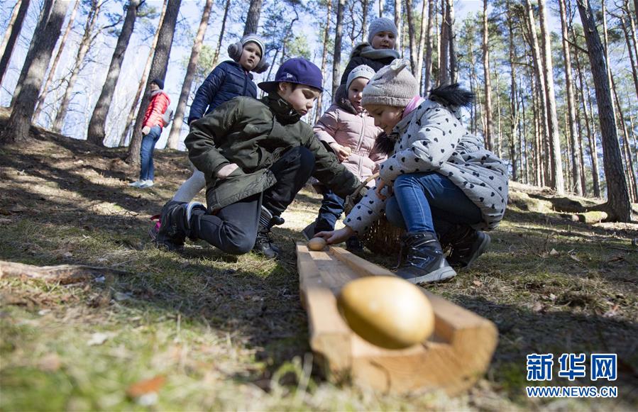 3月24日,在拉脱维亚里加,孩子们在春分庆祝活动上玩耍。 当日,拉脱维亚里加举行活动庆祝春分,当地居民荡起秋千、制作彩色鸡蛋,迎接春天的到来。 新华社发(艾迪斯摄)