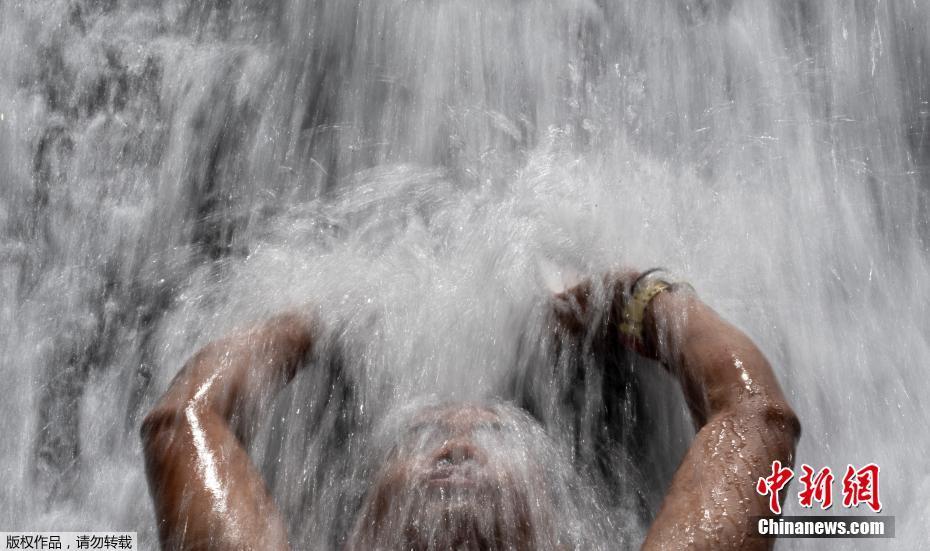 当地时间3月24日,菲律宾马尼拉东部黎刹省的一个废弃大坝上,当地民众在坝上嬉水消暑。