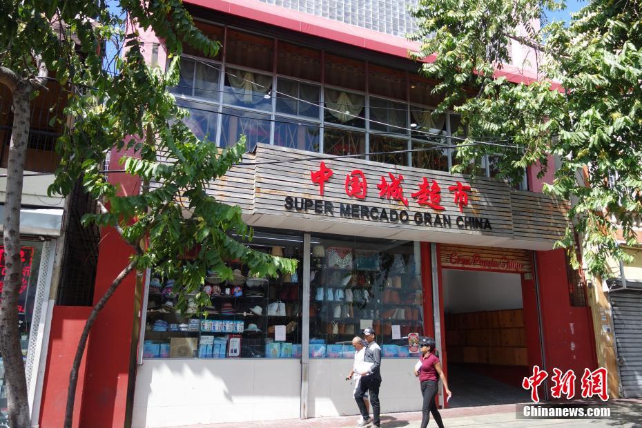 行人从多米尼加首都圣多明各“唐人街”的华人超市前走过。中新社记者 莫成雄 摄