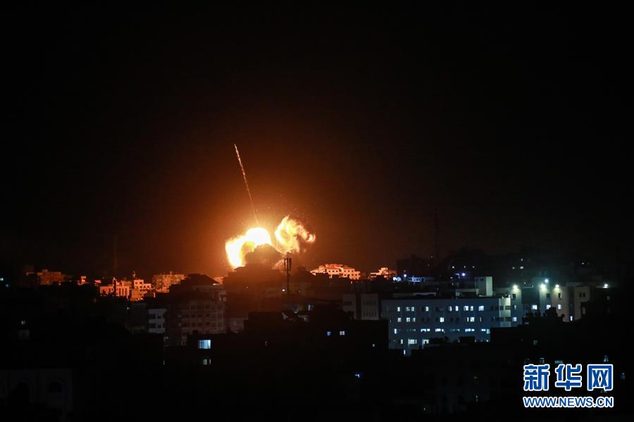 3月25日,加沙城的建筑遭以色列军队空袭后起火。 新华社发
