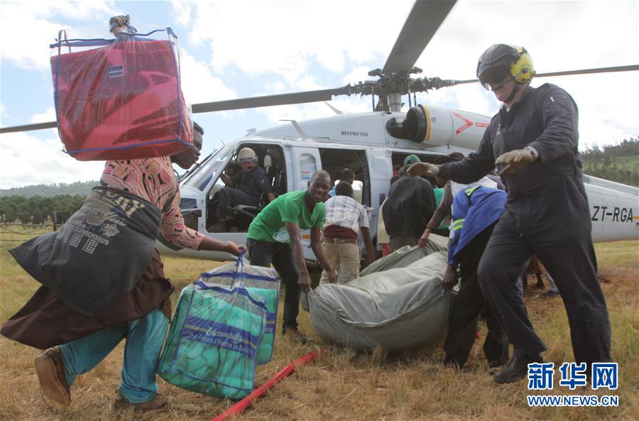 3月24日,在津巴布韦马尼卡兰省的奇平吉,工作人员装卸援助的物资。 据莫桑比克、津巴布韦及马拉维官方23日消息,印度洋强热带气旋“伊代”已在上述三国造成数百人死亡、数百人失踪。由于搜救还在进行,死亡人数极有可能进一步上升。 新华社发(肖恩·朱萨摄)
