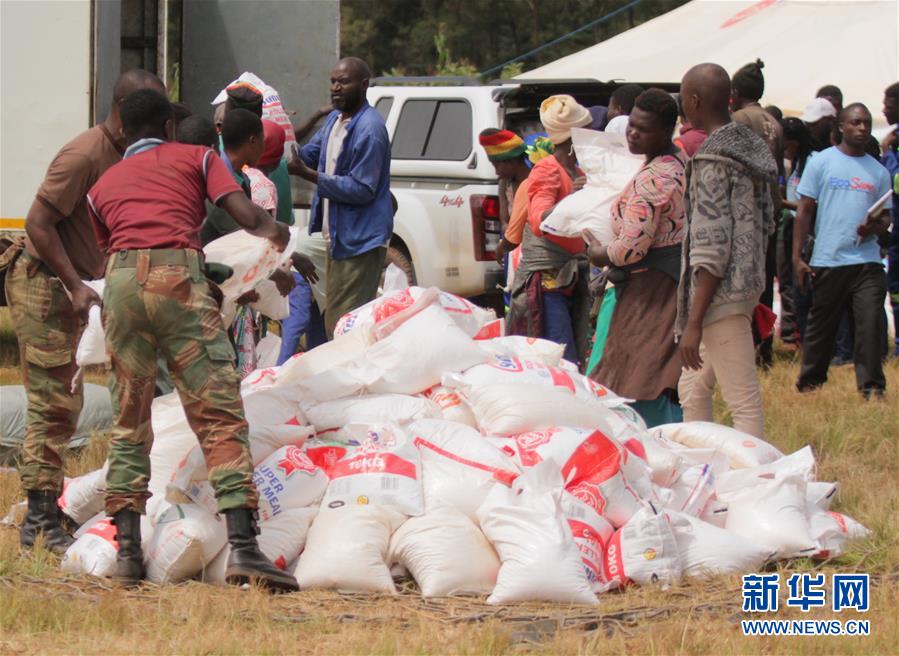 3月24日,在津巴布韦马尼卡兰省的奇平吉,工作人员分发玉米粉。 据莫桑比克、津巴布韦及马拉维官方23日消息,印度洋强热带气旋“伊代”已在上述三国造成数百人死亡、数百人失踪。由于搜救还在进行,死亡人数极有可能进一步上升。 新华社发(肖恩·朱萨摄)