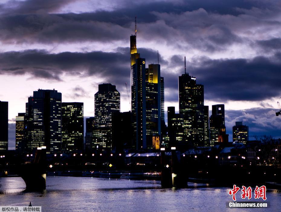 浑然天成神秘紫 法兰克福河水与云朵搭出别样夜景