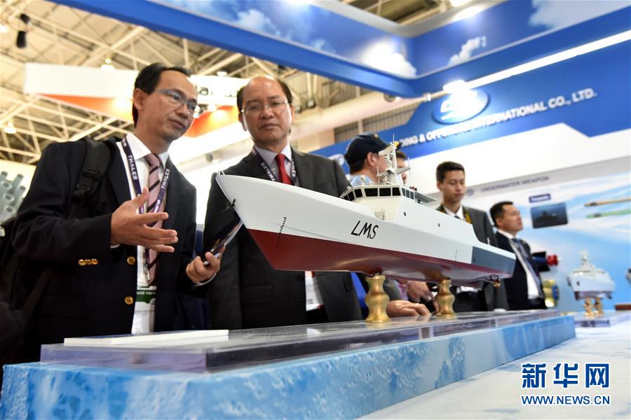 3月26日,在马来西亚兰卡威国际海事与航空展上,参观者在中国展区参观。第15届兰卡威国际海事与航空展26日在马来西亚旅游胜地兰卡威开幕,吸引各大防务厂商前来参展。 新华社发(张纹综摄)