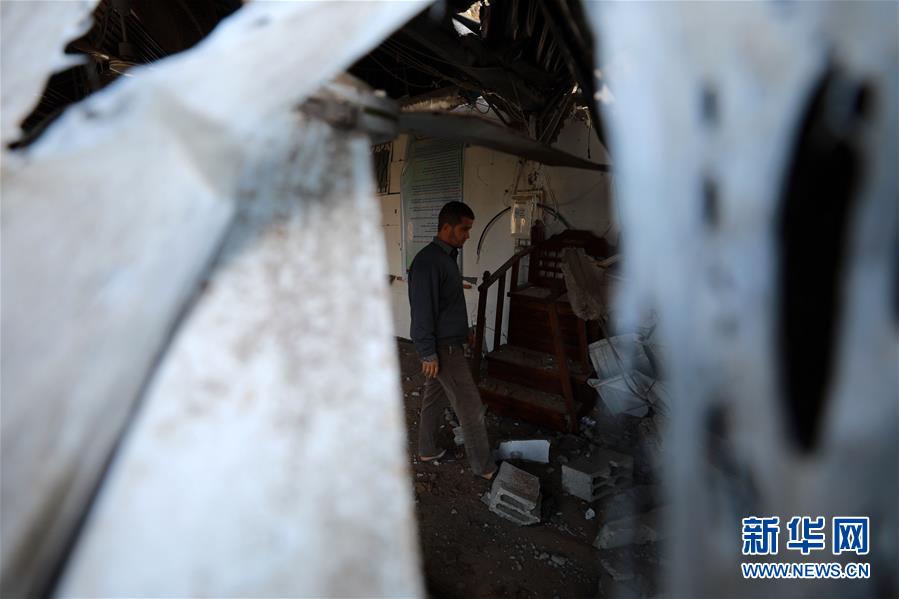 3月26日,在加沙城,巴勒斯坦人查看以色列军队空袭后的建筑废墟。新华社发(亚西尔摄)