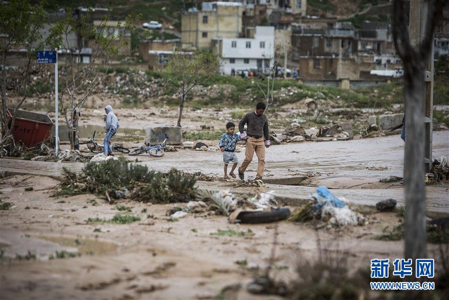 3月26日,在伊朗设拉子,一名男子牵着孩子走在洪水过后的路面上。据伊朗官方媒体伊斯兰共和国通讯社26日报道,连日持续降雨加剧了伊朗境内洪涝灾害。截至当天,伊朗全国31个省已有28个省不同程度受到影响。伊南部法尔斯省首府、历史名城设拉子灾情严重,洪水已导致至少18人死亡、数十人受伤。 新华社发(艾哈迈德·哈拉比萨斯摄)