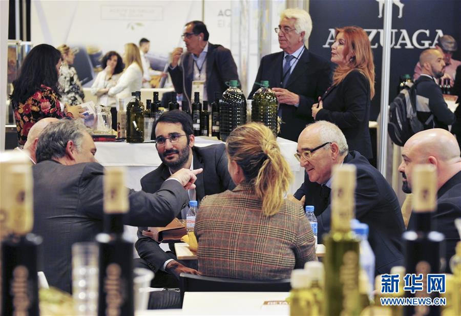 3月27日,在西班牙马德里,客商在世界橄榄油博览会上洽谈。3月27日至28日,2019世界橄榄油博览会在西班牙马德里展览馆(IFEMA)举行。此次博览会有超过760家参展商参展,并举办多场主题讲座和交流会。 新华社记者 郭求达 摄
