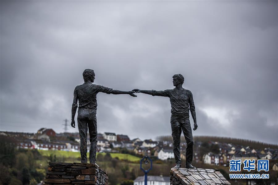 这是3月18日在英国北爱尔兰第二大城市德里拍摄的以呼吁和平为主题的雕像。 新华社记者 韩岩 摄