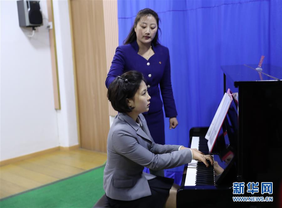 3月25日,在朝鲜平壤金亨稷师范大学,一名教师为音乐学部钢琴专业的学生上钢琴课。 新华社记者程大雨摄