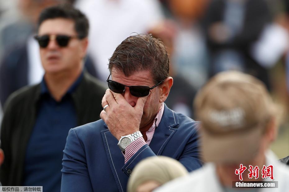 当地时间3月29日,新西兰在克赖斯特彻奇市哈格利公园举行国家纪念仪式,致哀清真寺枪击案遇难者。图为一名男子在听到播放的国歌时,心绪难平。