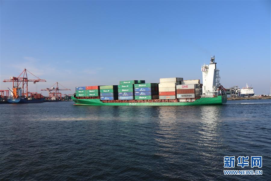 3月29日,在爱尔兰首都都柏林,一艘集装箱货船在驶入都柏林港。新华社发