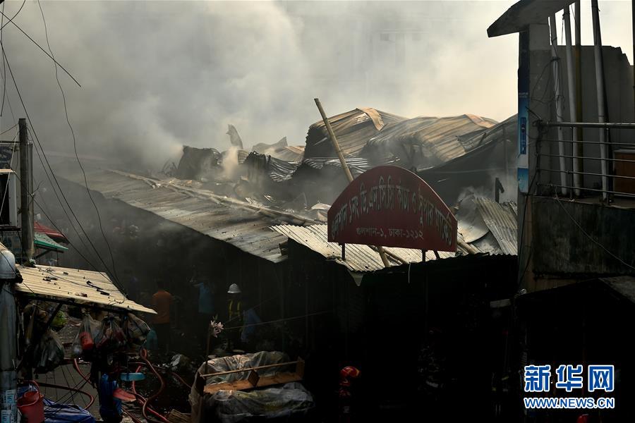 这是3月30日拍摄的孟加拉国首都达卡发生火灾的市场。新华社发