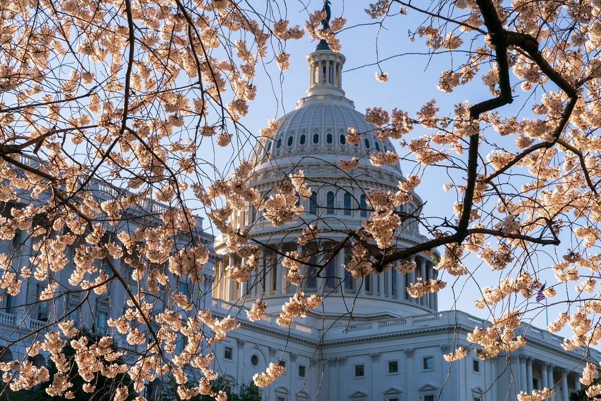 美国华盛顿樱花怒放 繁花掩映国会大厦美不胜收