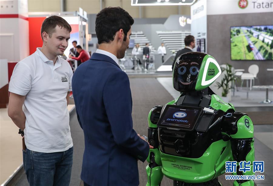 4月1日,在德国汉诺威,参观者在汉诺威工博会上与俄罗斯展区的机器人互动。当日,2019年汉诺威工业博览会(工博会)正式开门迎客,并将持续至4月5日。本届工博会主题为“融合的工业——工业智能”,共吸引来自全球75个国家和地区的6500家参展商参展,参观人数预计将超过22万。 新华社记者单宇琦摄