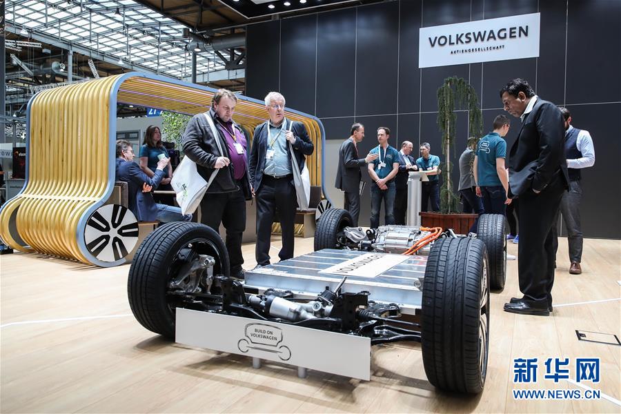 4月1日,在德国汉诺威,参观者在汉诺威工博会上观看大众公司展区展出的汽车底盘。当日,2019年汉诺威工业博览会(工博会)正式开门迎客,并将持续至4月5日。本届工博会主题为“融合的工业——工业智能”,共吸引来自全球75个国家和地区的6500家参展商参展,参观人数预计将超过22万。 新华社记者单宇琦摄