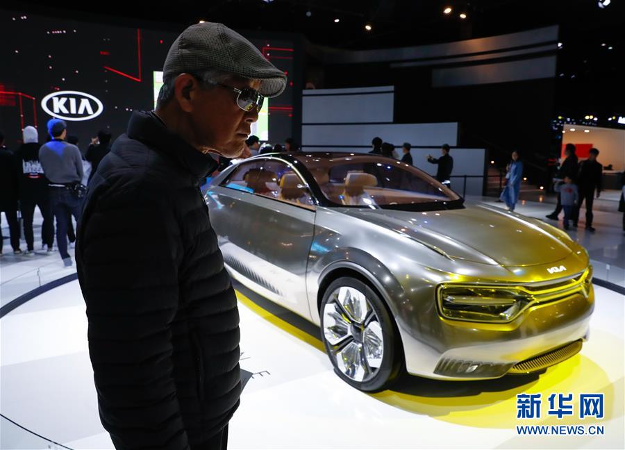 4月2日,在韩国高阳,一名参观者走过起亚IMAGINE概念车。新华社记者王婧嫱摄