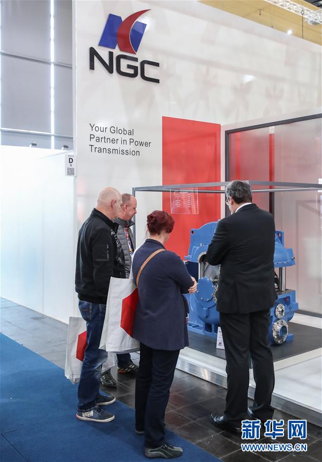 4月2日,在德国汉诺威,参观者观看中国南高齿集团展区展出的设备。 2019年汉诺威工业博览会4月1日至4月5日在德国汉诺威举行。本届展会共吸引来自全球75个国家和地区的6500家参展商,其中,中国展商数量仅次于东道主德国。 新华社记者 单宇琦 摄