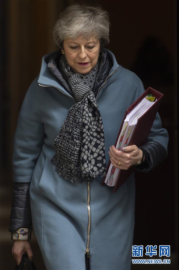 4月3日,在英国伦敦,英国首相特雷莎·梅离开首相府,前往议会进行首相问答。新华社发(雷伊·唐摄)