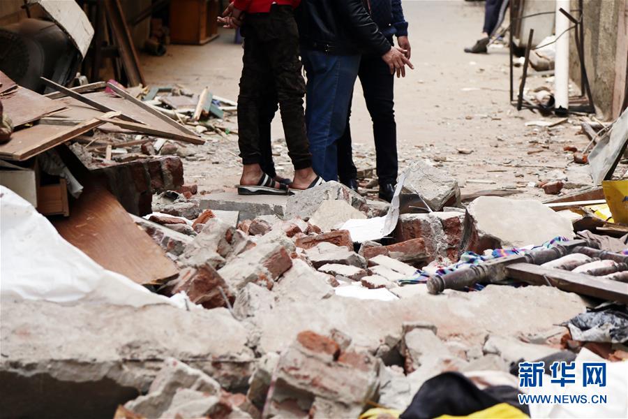 这是4月3日在埃及首都开罗拍摄的天然气管道爆炸事故现场。 埃及首都开罗一楼房3日发生天然气管道爆炸,目前已造成1人死亡,多人受伤。 新华社发(艾哈迈德·戈马 摄)