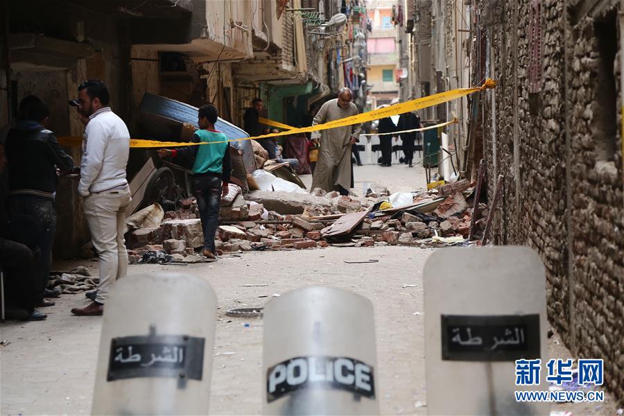 4月3日,在埃及首都开罗,人们经过天然气管道爆炸事故现场附近。 埃及首都开罗一楼房3日发生天然气管道爆炸,目前已造成1人死亡,多人受伤。 新华社发(艾哈迈德·戈马 摄)