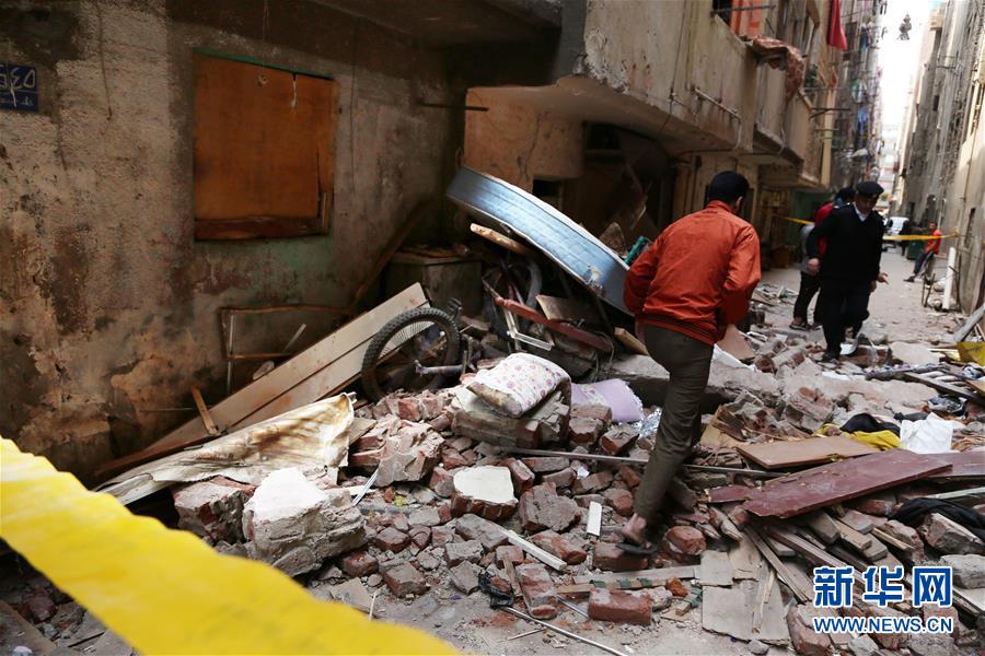 4月3日,在埃及首都开罗,人们经过天然气管道爆炸事故现场附近。 埃及首都开罗一楼房3日发生天然气管道爆炸,目前已造成1人死亡,多人受伤。 新华社发(艾哈迈德·戈马 摄)