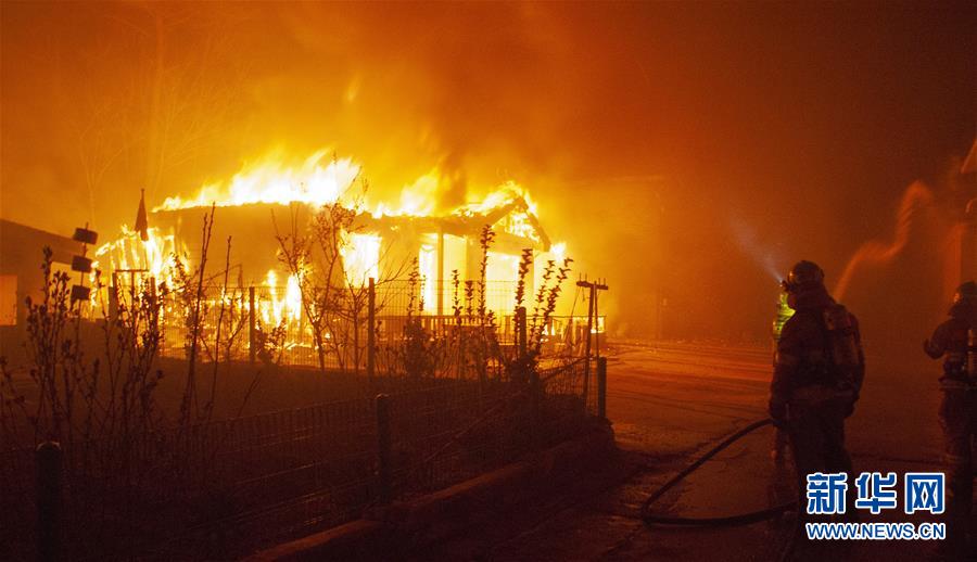 4月5日凌晨,消防人员在韩国高城郡灭火。 韩国东部江原道一带发生的大规模山林火灾5日被基本扑灭。韩国政府宣布此次山火为“国家灾难”。 新华社发 (李相浩摄)